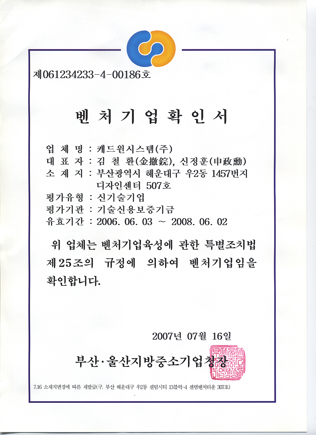 부산광역시 해운대구 센텀동로 57 디자인센터 507호 /(주)캐드윈시스템/대표 김철환