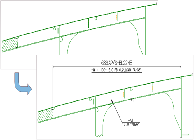 - Panel / Plate 별로 취부되어 있는 Angle( stiffener, flange )의