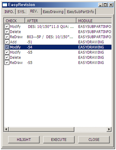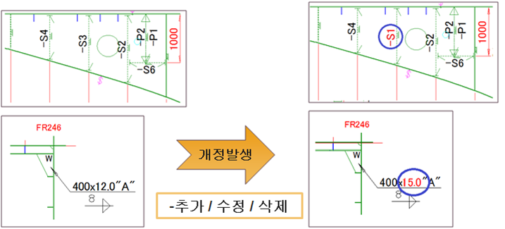 - EasyDraw 기능으로 생성된 정보를 대상으로 모델에 개정 발생 시